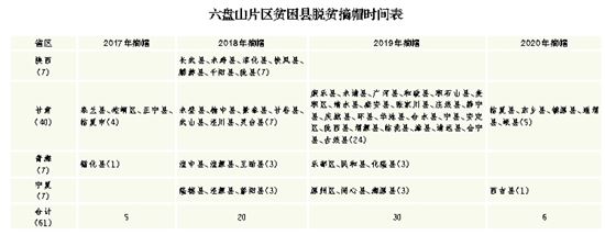 截至2019年年底,六盤山片區尚未摘帽的甘肅東鄉縣、臨夏縣、通渭縣、岷縣、鎮原縣,寧夏西吉縣,合計剩余183個貧困村、18500余戶、6.3萬多人未脫貧,其中老年人、患病者、殘疾人的比例較高,都是最難啃的硬骨頭,東鄉縣、岷縣、通渭縣的貧困發生率仍在3%以上。